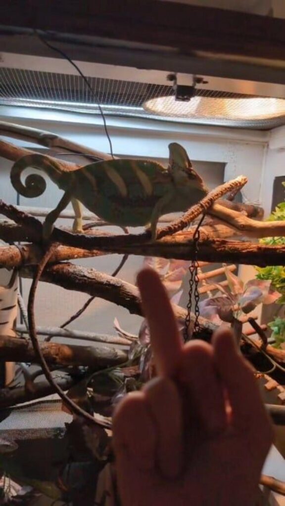カメレオンと飼い主がお互いに中指を立て合う動画がじわじわくるwww