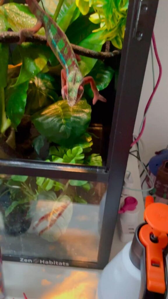 エサを追いかけたカメレオンが気づいてしまった…その表情が面白すぎるwww